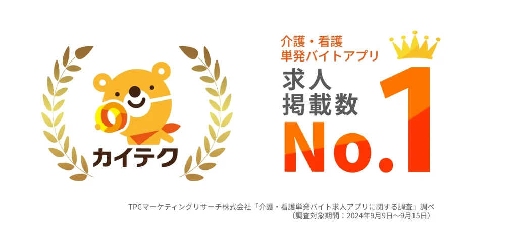参考:PR TIMES「カイテク、介護・看護単発バイトアプリの「求人掲載数」でNo.1を取得!