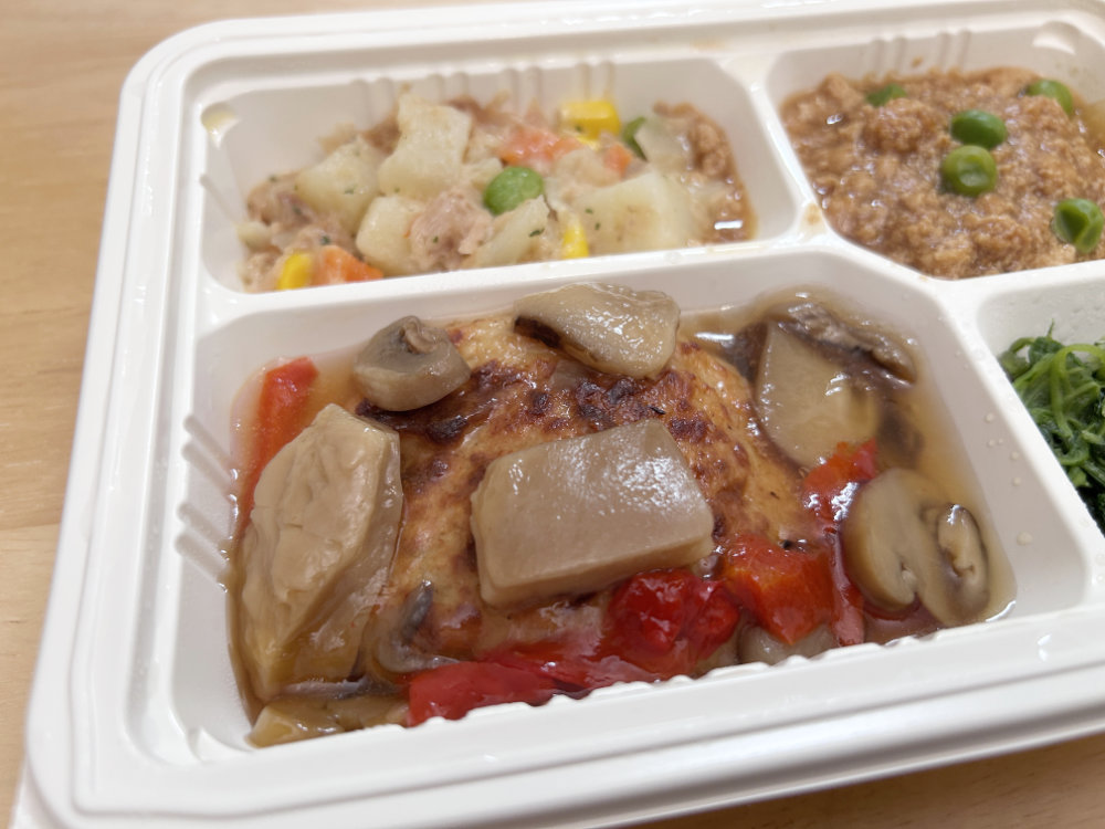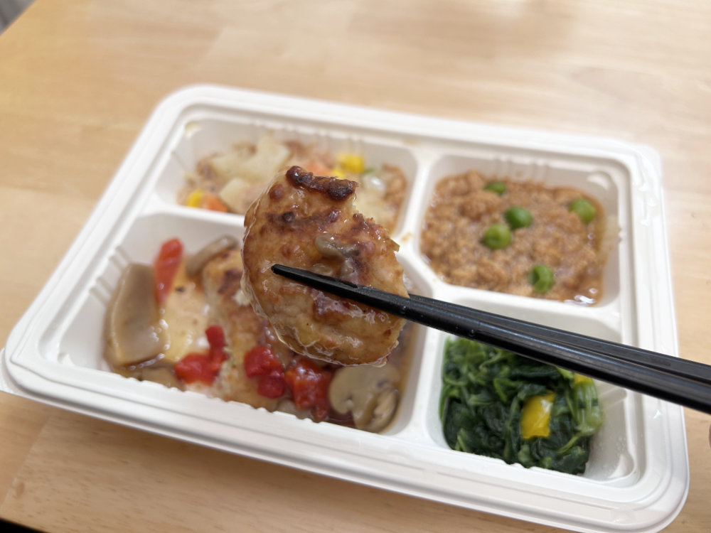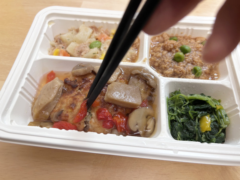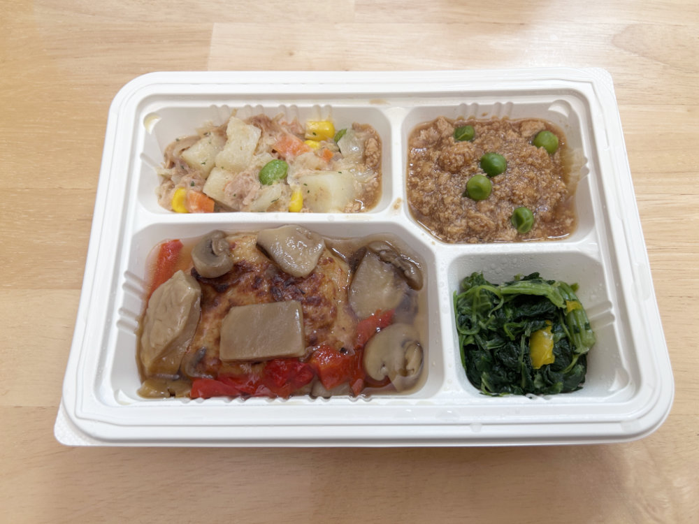 今回実食した「豆腐ハンバーグ和風きのこソース」ほどよくやわらか宅配食レベルです。