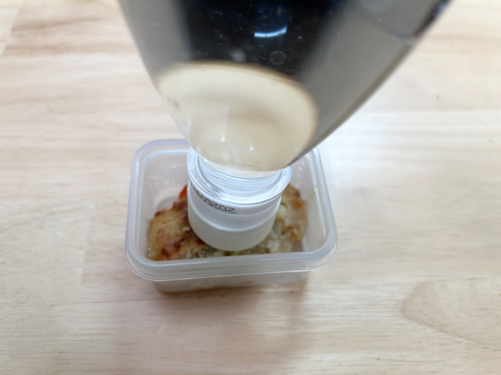 今回のお弁当の解凍は「600W5分50秒」で行いました。