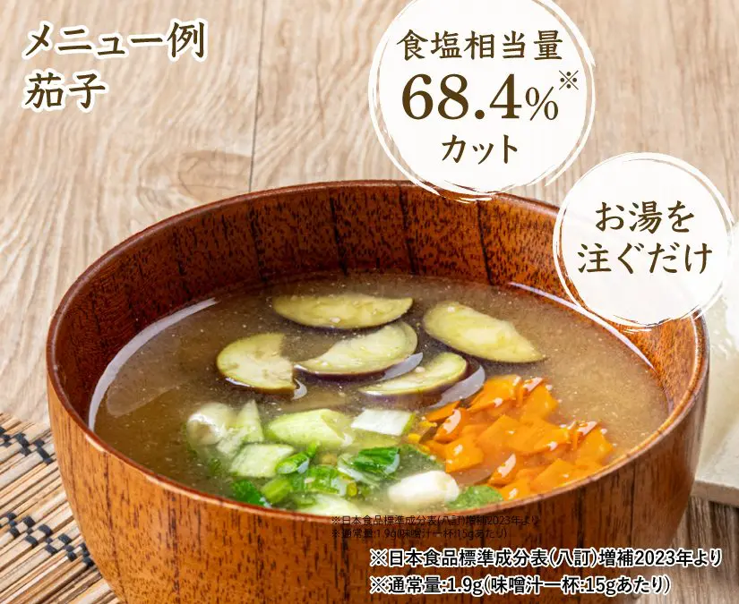 塩分を制限しながらもお味噌汁を楽しめるセットです。なんと食塩相当量は1杯につき0.6gとなっています。